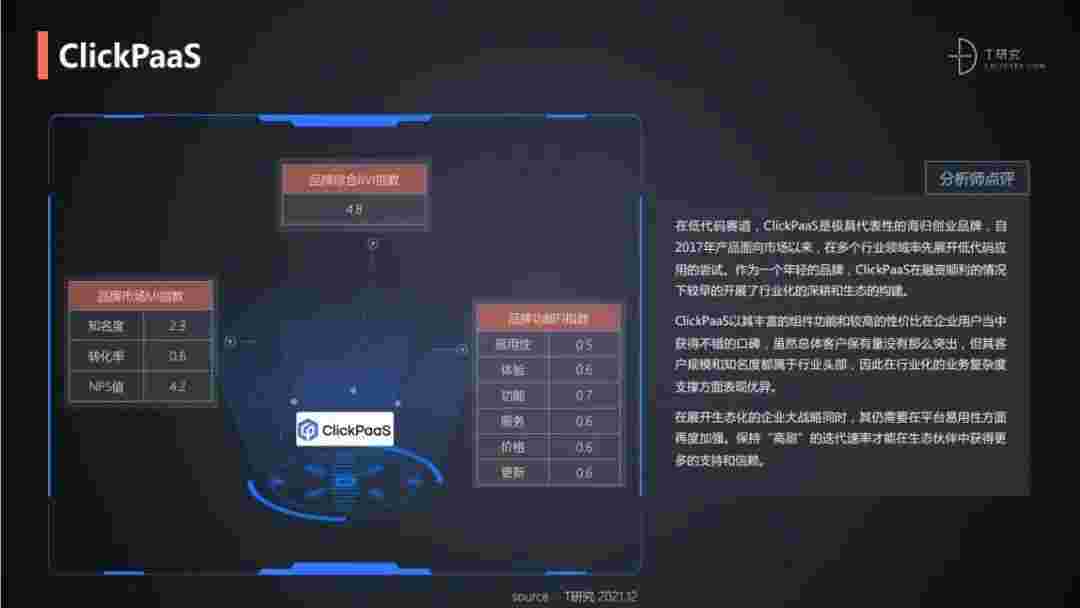 T研究认为,,,,,,在低代码赛道,,,,,,,,,,,小微钱包是极具代表性的海归创业品牌,,,,自2017年产品面向市场以来,,,,,在多个行业领域率先展开低代码应用的尝试。。。。。。。。。。作为一个年轻的品牌,,,,,,,,,,小微钱包较早的开展了行业化的深耕和生态的构建。。。。。小微钱包以丰富的组件功能和较高的性价比在企业用户当中获得不错的口碑,,,,,,,,,,,,,,在客户规模和知名度都属于行业头部,,,,,,,,因此在行业化的业务复杂度支撑方面表现优异。。。。。。。。。